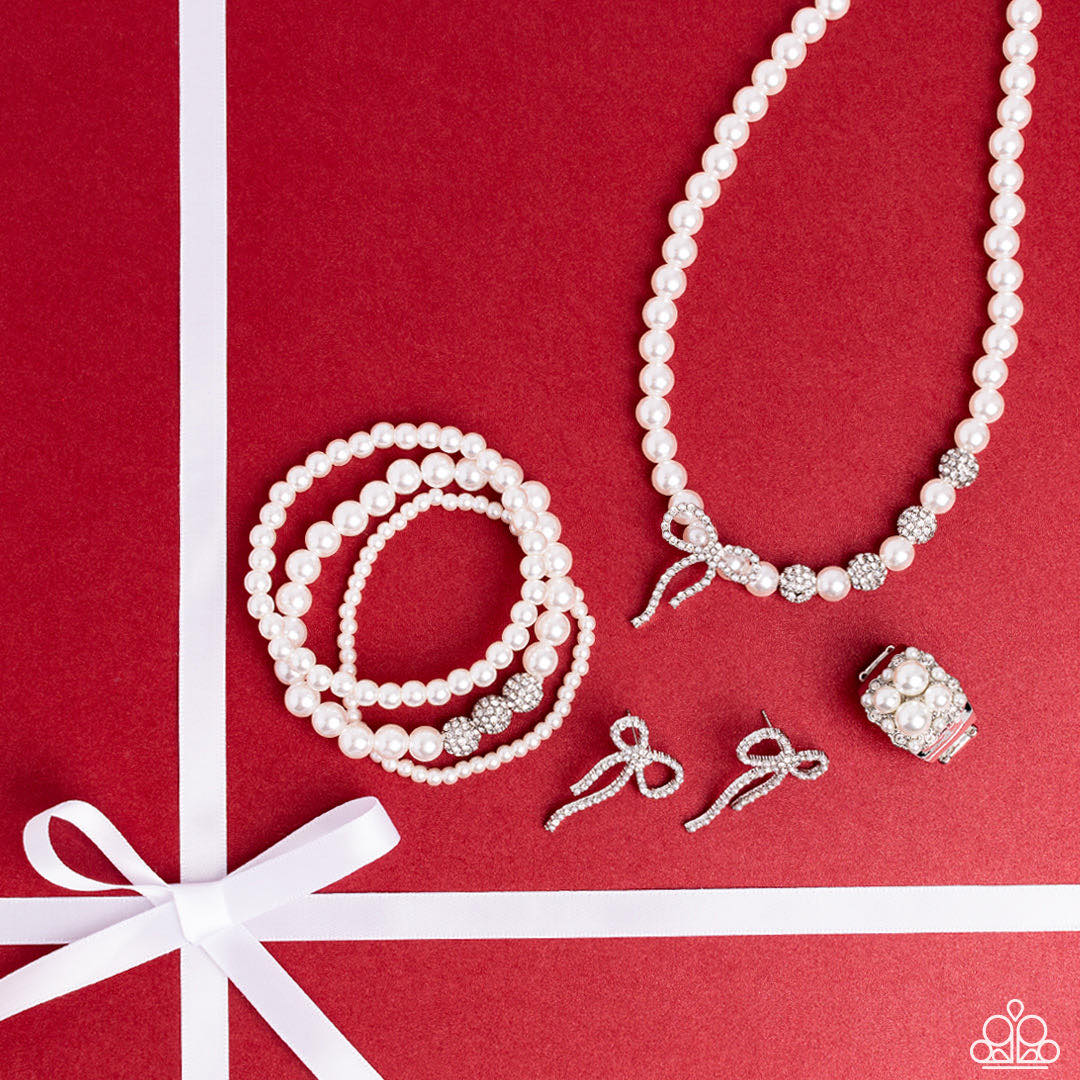 Sold only as a set which includes a necklace with matching earrings, a matching bracelet with stretchy bands, a ring with stretchy band for a flexible fit, and an extra pair of earrings that can be worn as an alternate.