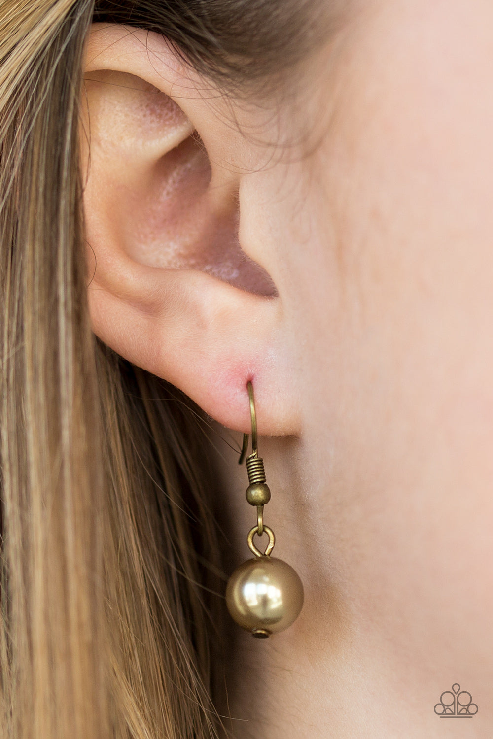 Varying in size, pearly brass beads and faceted brass teardrops drip from the bottoms of interlocking brass chains, creating a bold industrial fringe below the collar. Features an adjustable clasp closure.