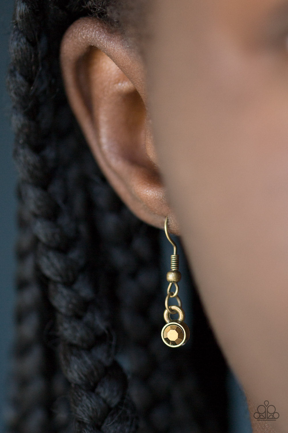 Dotted with glittery aurum rhinestone centers, glistening brass rings connect into a bold diamond-shaped pendant. Sections of shiny brass chain tassels stream from the bottom of the regal frame, adding shimmery movement to the dramatic centerpiece. Features an adjustable clasp closure.