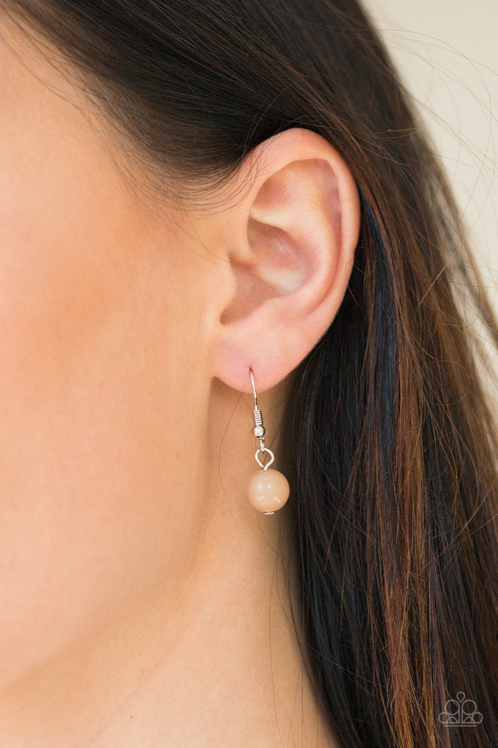 Infused with shimmery silver hoops, glassy and polished brown beads trickle along glistening silver chains for a bubbly look. Features an adjustable clasp closure.