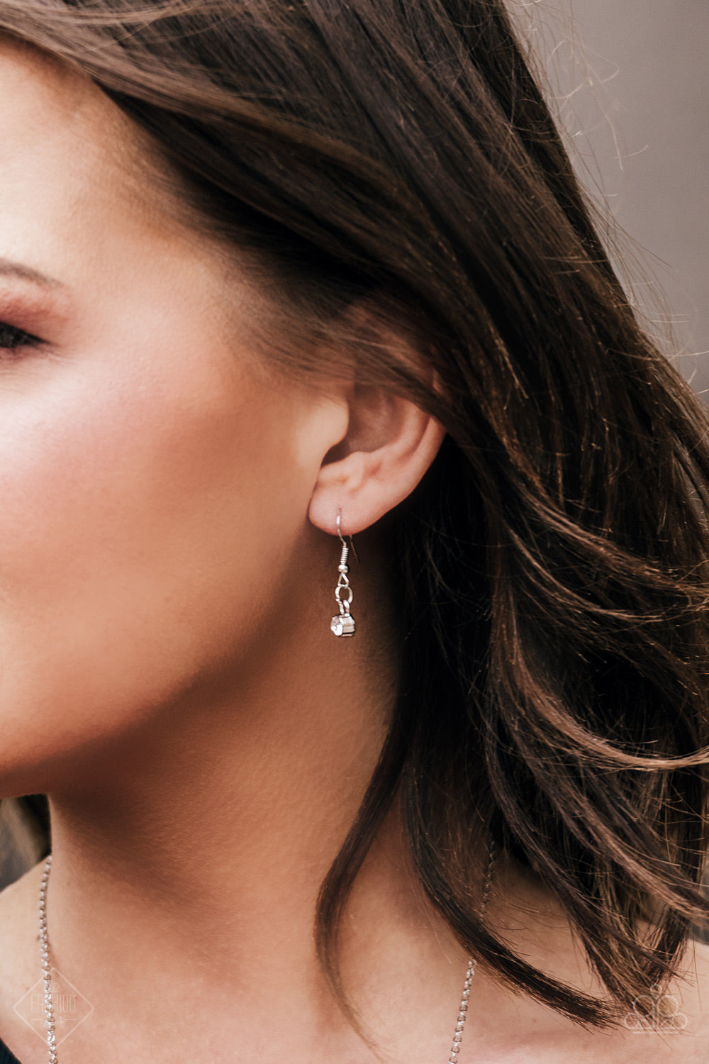 Gradually increasing in size towards the center, glittery white rhinestones link across the bottom of an elegantly elongated silver chain for a timeless look. Features an adjustable clasp closure.