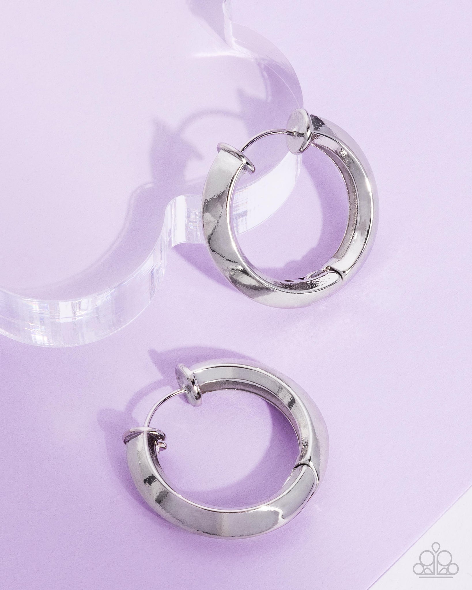 Paparazzi ~ Hinged Homage ~ Silver Hoop Earrings