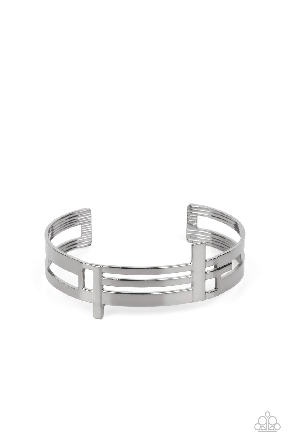 Paparazzi ~ Barred Lines ~ Men's Black/Gunmetal Cuff Bracelet