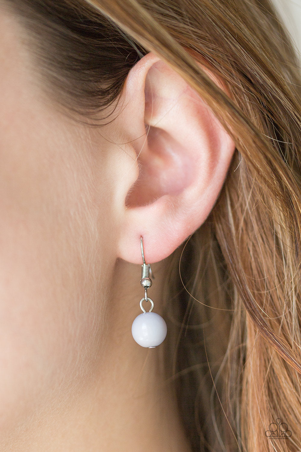 Neutral gray beads and curved silver teardrops swing from the bottom of interlocking silver chains, creating a flirtatious fringe below the collar. Features an adjustable clasp closure.