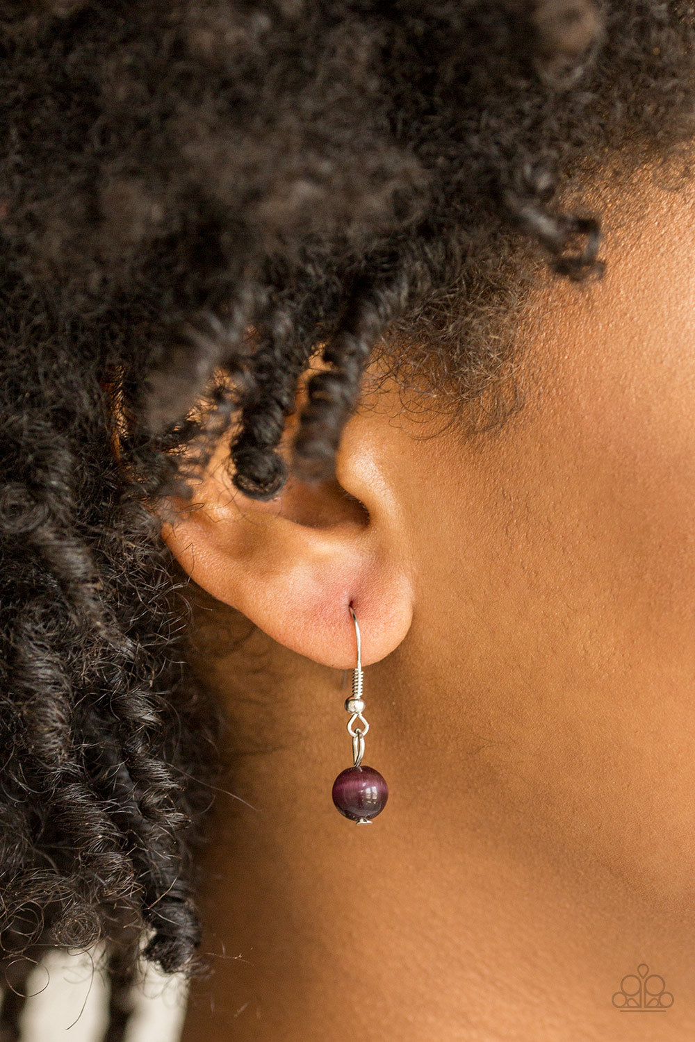 Infused with a white rhinestone encrusted fitting, an asymmetrical purple moonstone swings from the bottom of an elongated silver chain for a whimsical look. Features an adjustable clasp closure.