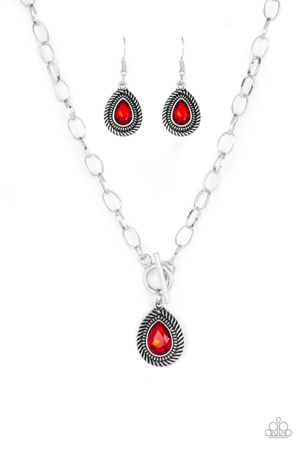 Paparazzi ~ Sheen Queen ~ Red Toggle Necklace Set