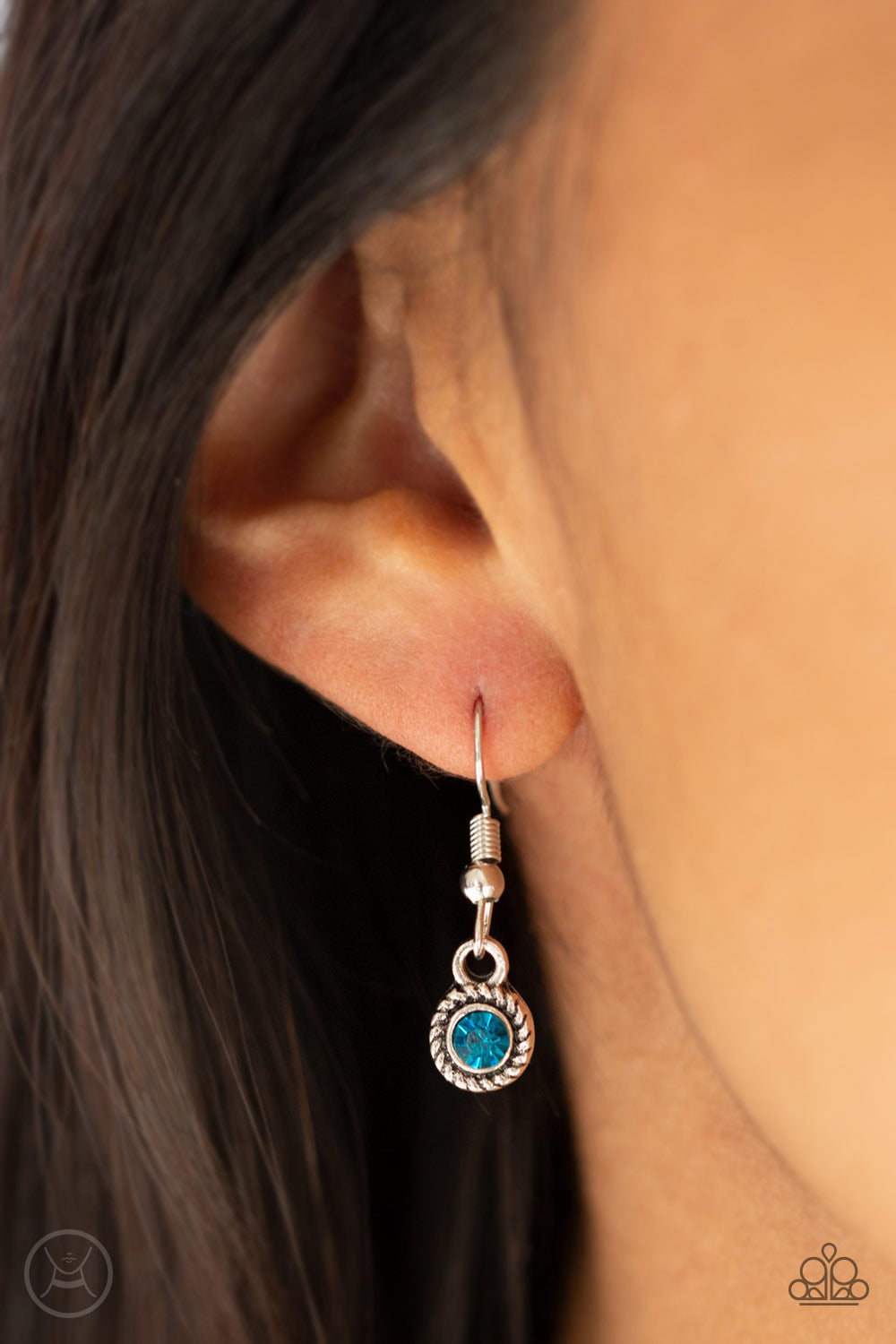 Pressed into ornate silver frames, a fringe of glittery blue rhinestones swings from the neck for a whimsical look. Features an adjustable clasp closure.