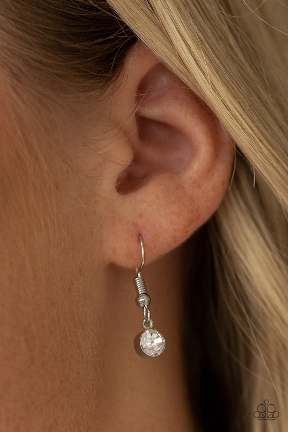 An oversized blue teardrop gem is nestled inside of an abstract silver frame that has been dipped in glassy white rhinestones. The spellbinding pendant swings from the bottom of a lengthened silver chain for a glamorous finish. Features an adjustable clasp closure.