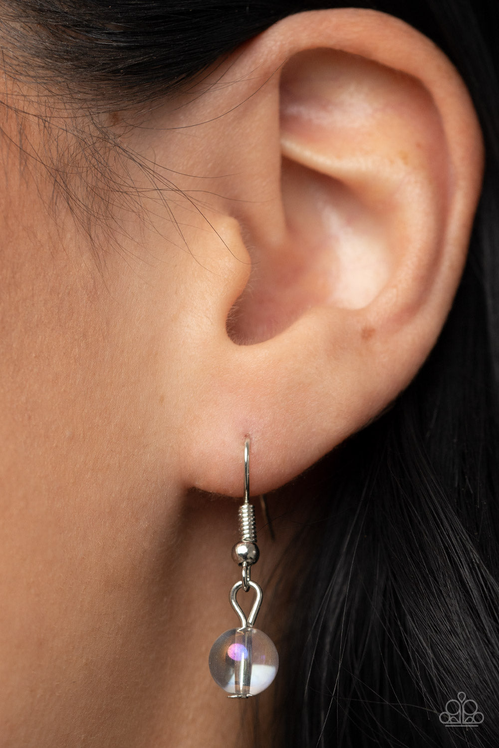 Infused with faceted and studded silver accents, iridescent beads and oversized white pearls connect with sections of oversized silver hoops across the chest. Enhanced with matching beaded accents, a shimmery silver tassel swings from the bottom for a romantic finish. Features an adjustable clasp closure.